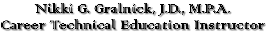 Dr. Gralnick has a Bachelor's Degree (B.A.) from U.C.L.A., a Master of Public Administration (M.P.A.) from California State University, Long Beach, and a Doctor of Jurisprudence (J.D.), from Ventura College of Law. In addition, she has a Lifetime California Community College Credential in Administration and Public Services and a CTE "cleared" credential in four industries which incorporates the following:
